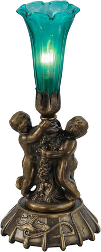 Meyda tiffany 12"H Green Irridescent Cherub Pond Lily Mini Lamp