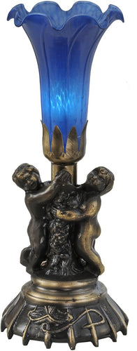 Meyda tiffany 13"H Blue Twin Cherub Pond Lily Mini Lamp
