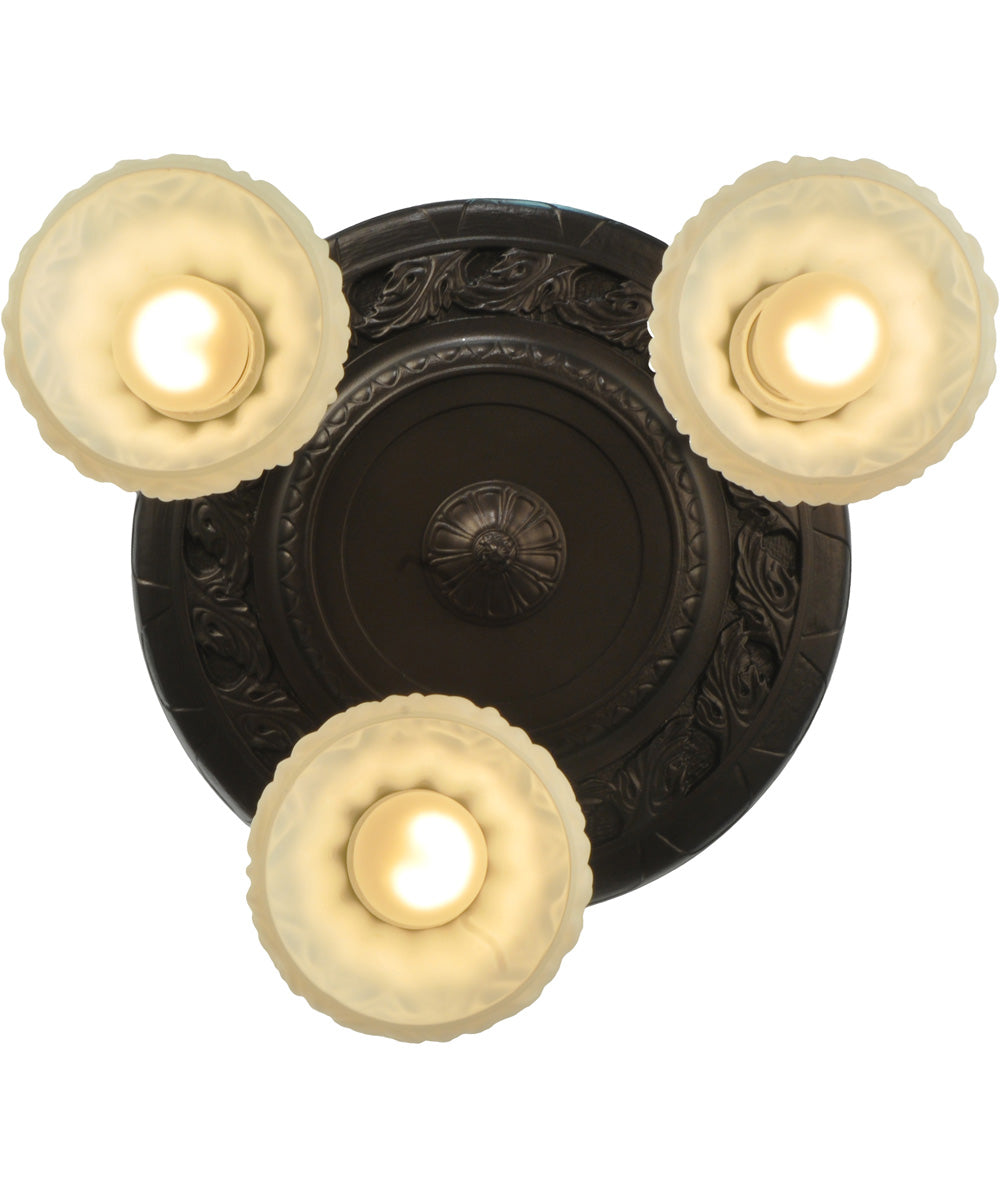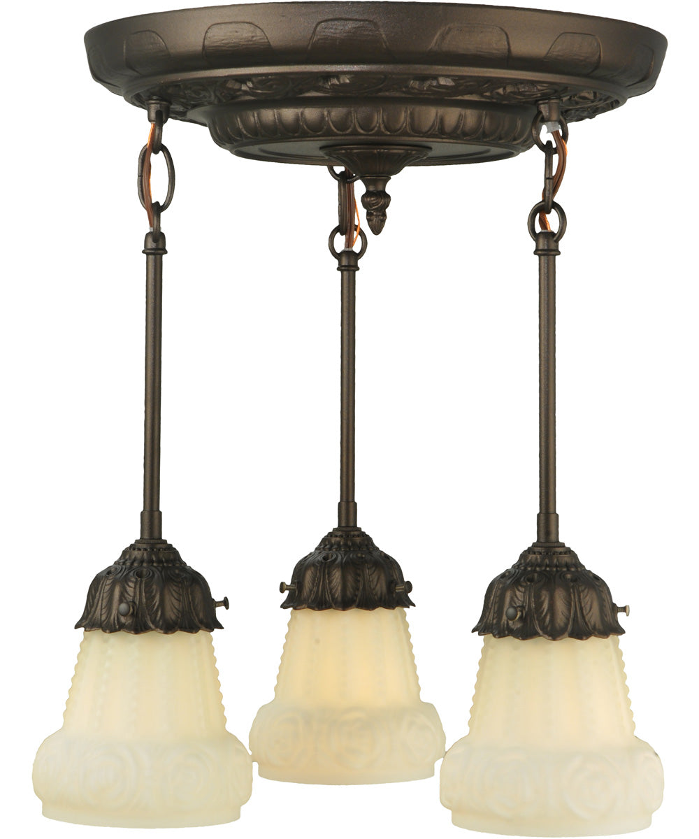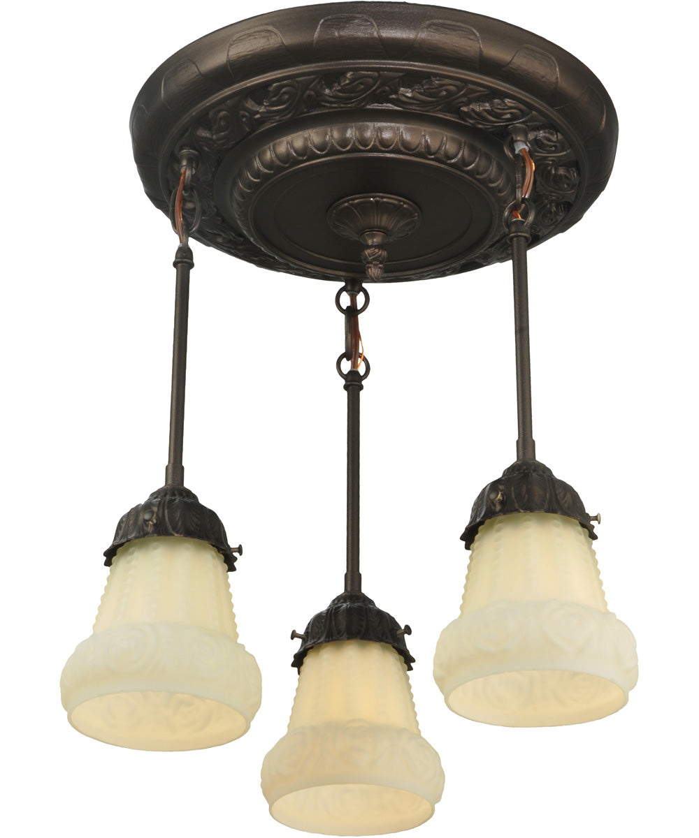 15"W White Puffy Rose 3 Light Semi-Flushmount