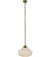 This pendant light features a transparent brass finish that exudes a timeless elegance. The traditional globe design is complemented by a metal or polyresin base material and a white glass shade. The combination of these materials not only enhances the aesthetic appeal but also ensures durability and longevity. The light fixture's shape is reminiscent of vintage schoolhouse lighting, making it a perfect fit for those who appreciate classic, retro styles.