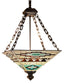 The 24"W VALENCIA Mission Inverted Pendant is a stunning piece of lighting that draws inspiration from the intricate patterns and vibrant colors of Native American blankets and pottery. This Meyda Tiffany designed pendant showcases a meticulously crafted stained glass shade, featuring a harmonious blend of Bark Brown granite glass, Sand Beige, and Turquoise hues. The inverted pendant design is complemented by clean-lined Mission style hardware, finished in a rich Mahogany Bronze, adding an earthy elegance to any room.