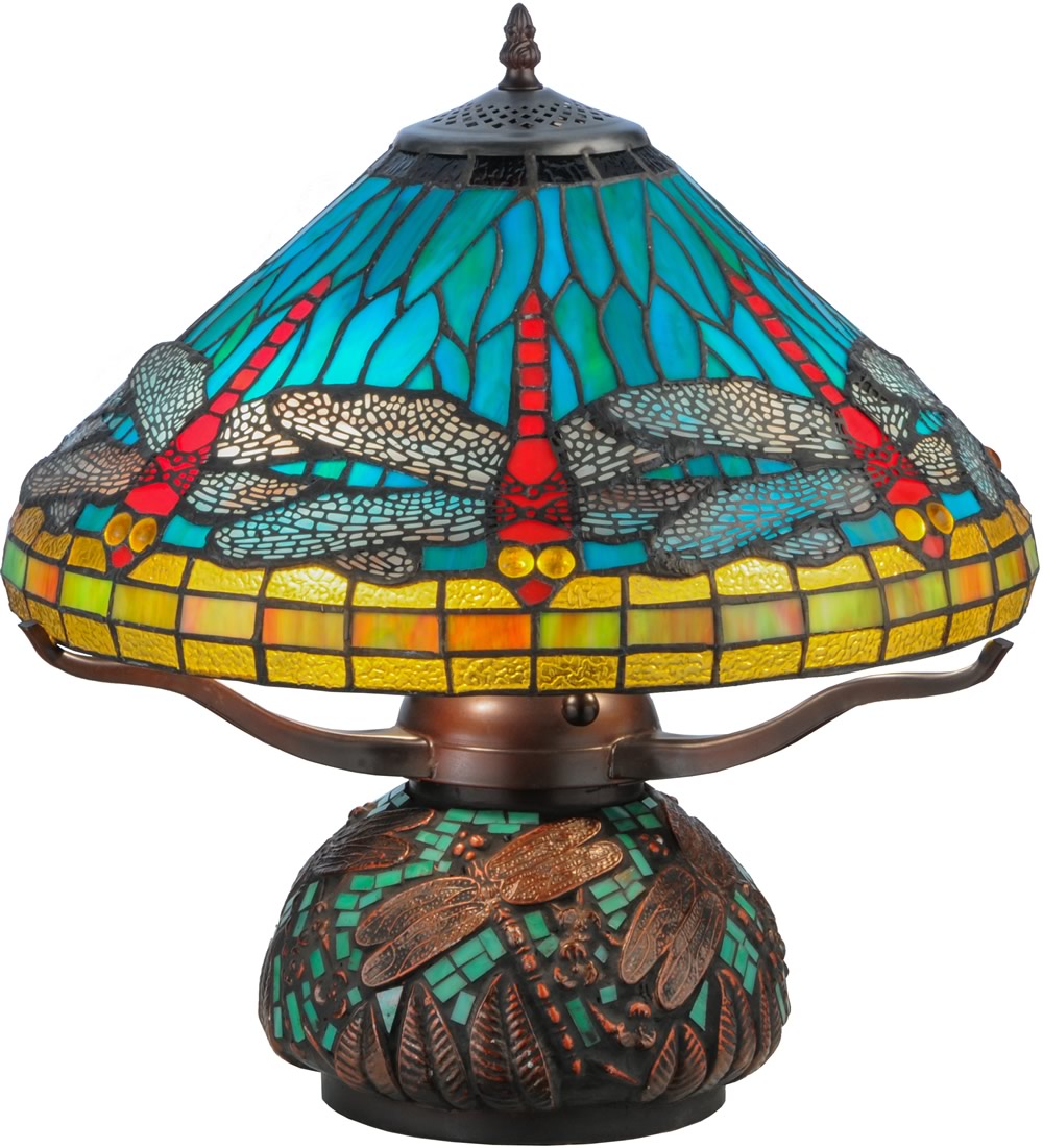 Don't miss the opportunity to own this exquisite 17"H Tiffany Dragonfly w/Tiffany Mosaic Base Table Lamp. Its timeless design, vibrant colors, and functional features make it a must-have for any home. Order now to add a touch of elegance and sophistication to your living space.