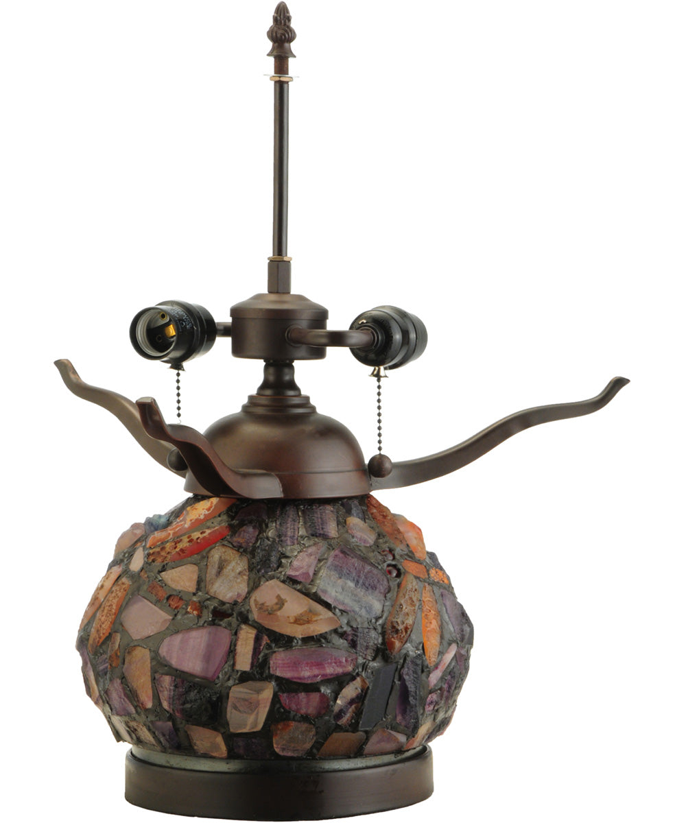 The rich palette of colors used in this lamp makes it a true work of art. The combination of ruby, amber, violet, and white glass pieces, along with the natural variations in the agate stones, results in a unique and eye-catching piece. The mahogany bronze finish of the base adds a touch of elegance and sophistication, making it a perfect addition to any room décor.