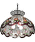 Grace your home with the exquisite 20" Wide Roseborder Pendant, a masterpiece of art and functionality. This pendant light features an elegantly crowned shade that showcases a stunning gridwork of Fern art glass. The design is further enhanced by a Plum Waterglass border adorned with swirling ribbons and Pink Rosebuds, complemented by Green Leaf accents. Each piece is meticulously crafted using the renowned Meyda Tiffany copperfoil construction process, ensuring it stands the test of time as an heirloom-quality fixture.