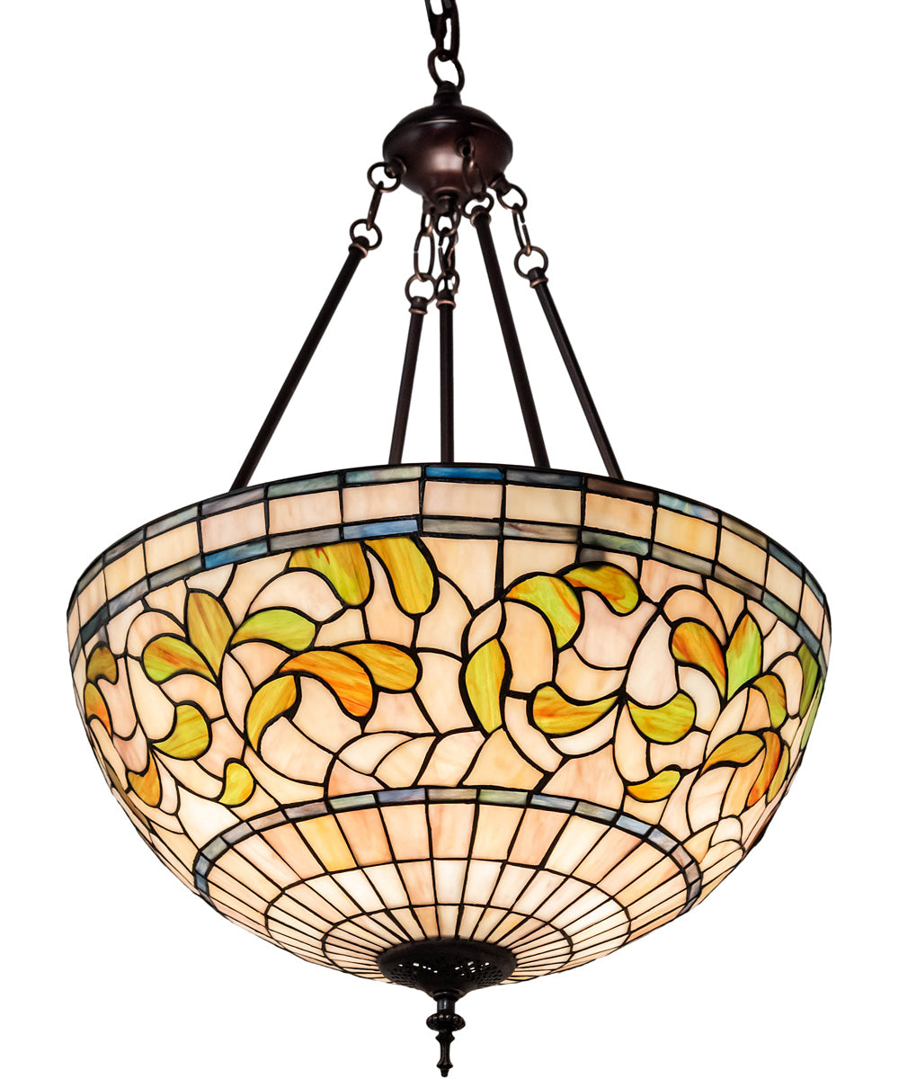 Don't miss the opportunity to add this exquisite piece to your home. The 20" Wide Tiffany Turning Leaf Inverted Pendant is not only a functional light fixture but also a work of art that will elevate the aesthetic of any room. With its stunning design, rich colors, and high-quality construction, it is sure to be a cherished addition to your home decor. Order now and transform your space with this beautiful pendant light.