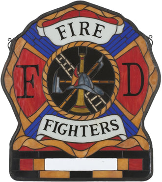 Meyda tiffany 23"H x 20"W Personalized Fireman's Shield Stained Glass Window