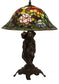 This lamp uses a single 60-watt medium base bulb, providing ample light for reading, working, or simply creating a warm and inviting atmosphere. It is UL listed for damp locations, making it suitable for use in various indoor environments. The stained glass shade diffuses the light beautifully, casting a soft, colorful glow that enhances the ambiance of any room.