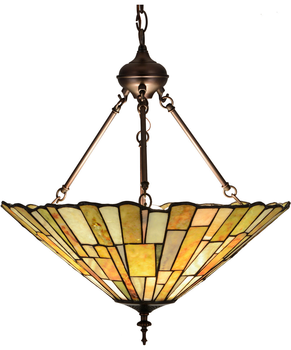 This exquisite pendant light boasts a Mahogany Bronze finish, which beautifully complements the sunflower, amber, green, and beige jadestone elements. The warm and earthy tones of the jadestone create a cozy and inviting atmosphere, perfect for any room in your home. The intricate stained glass design adds a touch of vintage charm, making it an ideal choice for those who appreciate classic and timeless decor.