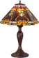 The 23"H Middleton Table Lamp is a stunning piece of art that combines elegance and functionality. This exquisite lamp features a beautifully crafted stained glass shade that showcases intricate patterns in Leaf Green, Amber, and Ripe Red Berry accents, all set against a rich Dark Amethyst background. The vibrant colors and detailed design create a resplendent look that adds a touch of sophistication to any room.