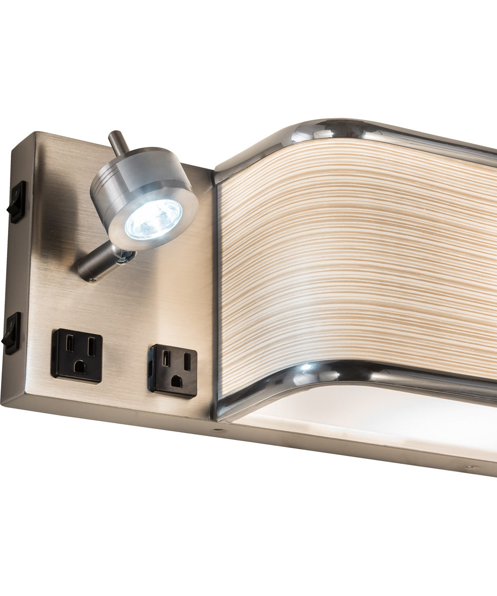 This extraordinary sconce features a Field Grass Textrene shade which is enhanced with a Statuario Idalight bottom diffuser with 2 Customer supplied GU24 26-Watt Fluorescent Lamps for functional down lighting. An adjustable spotlight with a Customer supplied 3-Watt Lamp is attached to the backplate to provide optimal accent illumination. The hardware and frame are offered in a Brushed Nickel finish. Handmade by master artisans in our manufacturing facility in Upstate NY; Finley is ideal as a vanity light in a powder room or as a wall sconce in other rooms. Custom finishes; sizes and styles are available. Dimmable lamping such as LED is offered. The 24-inch wall luminaire is UL and cUL listed for dry and damp locations.
