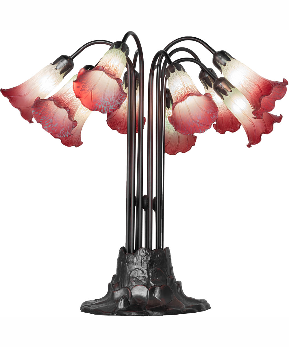 Meyda tiffany 24" High Seafoam/Cranberry Tiffany Pond Lily 10 Light Table Lamp