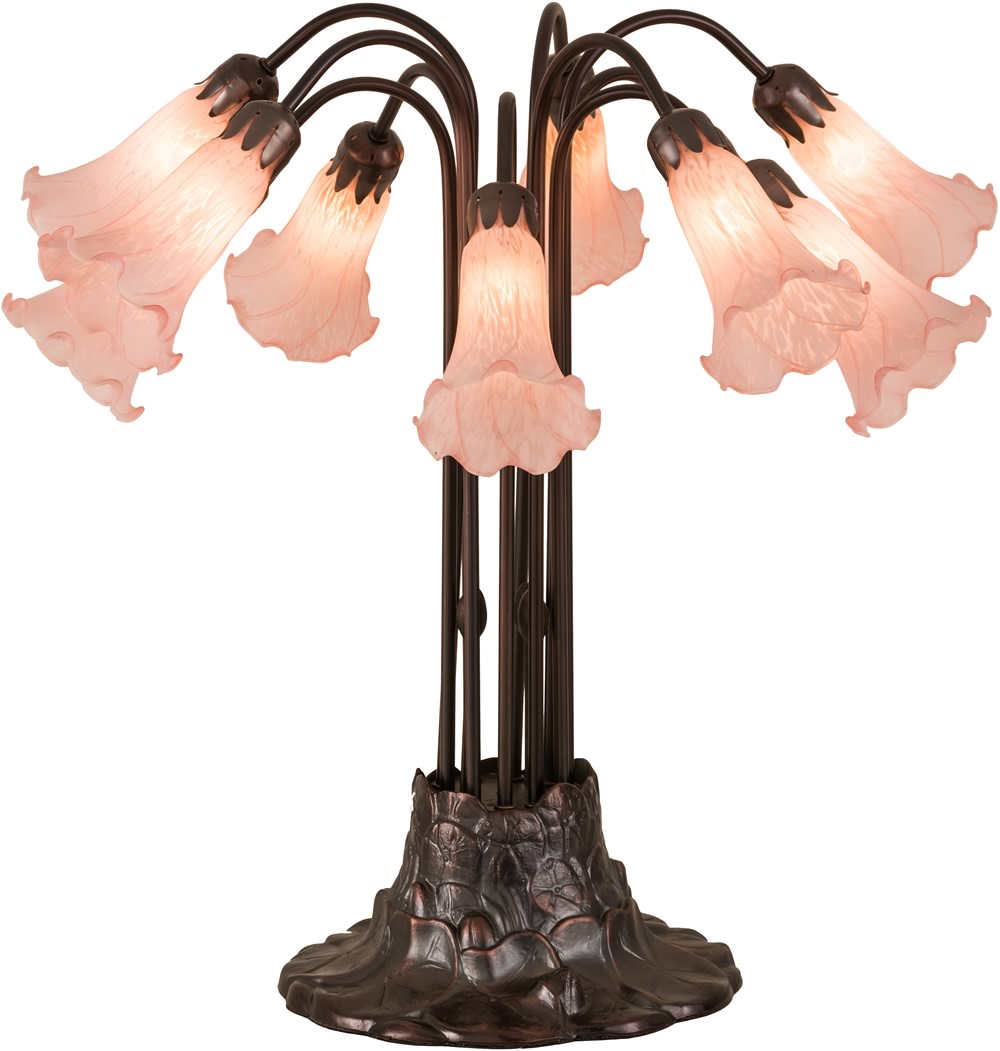 Don't miss the opportunity to own this exquisite 24"H Pink Pond Lily 10 Light Table Lamp. Its unique design, high-quality craftsmanship, and versatile style make it a must-have for any home. Illuminate your space with the warm, romantic glow of this beautiful lamp and enjoy the timeless elegance it brings to your décor. Order now and transform your home with this stunning piece of art.