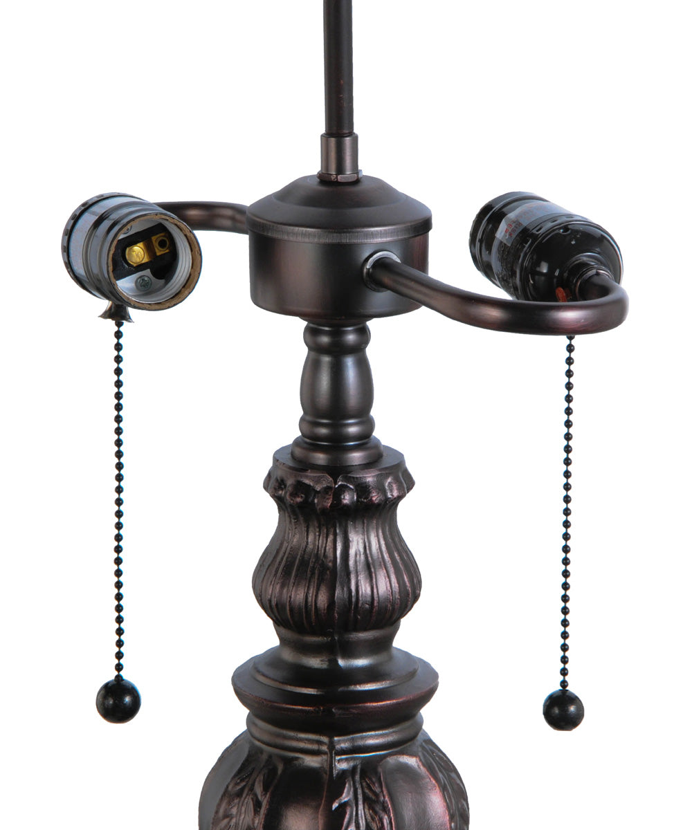 This table lamp is not just a beautiful decorative piece; it is also highly functional. It features two pull chains for easy operation, allowing you to control the light intensity according to your needs. The lamp accommodates two 60-watt medium base bulbs, providing ample illumination for any space. The UL listing for dry locations ensures safety and reliability, making it suitable for use in various indoor settings. Weighing 12 lbs, the lamp is sturdy and stable, ensuring it stays securely in place.