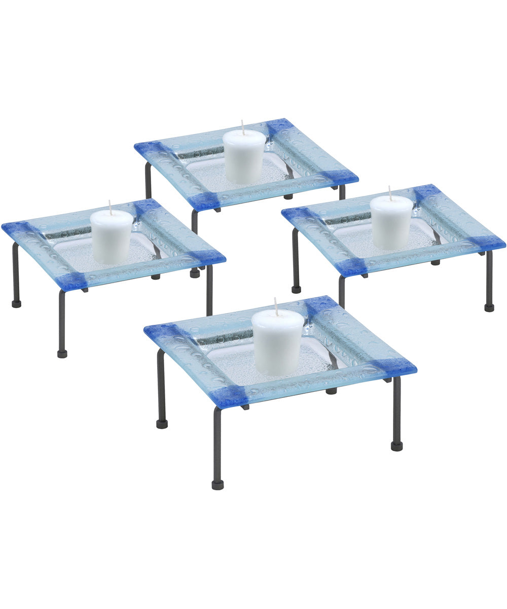 Dale tiffany 3.25 Inch H Blue Fused Glass 4-Piece Candle Holder Set (Candles Not Included)