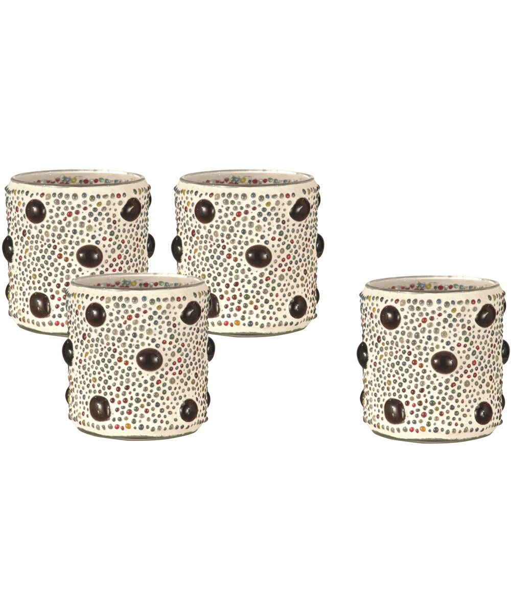 3 Inch H Beaded Jewel 4-Piece Mosaic Candle Holder Set (Candles Not Included)
