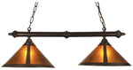 This island pendant light showcases a classic design with a modern twist. The conical shades are crafted from Amber Mica, which adds a touch of rustic charm to the overall aesthetic. The Mahogany Bronze finish on the metal base and bar enhances the vintage appeal, making it a perfect addition to traditional, transitional, or even industrial-themed interiors. The pendant's symmetrical design and clean lines ensure it complements a variety of decor styles.