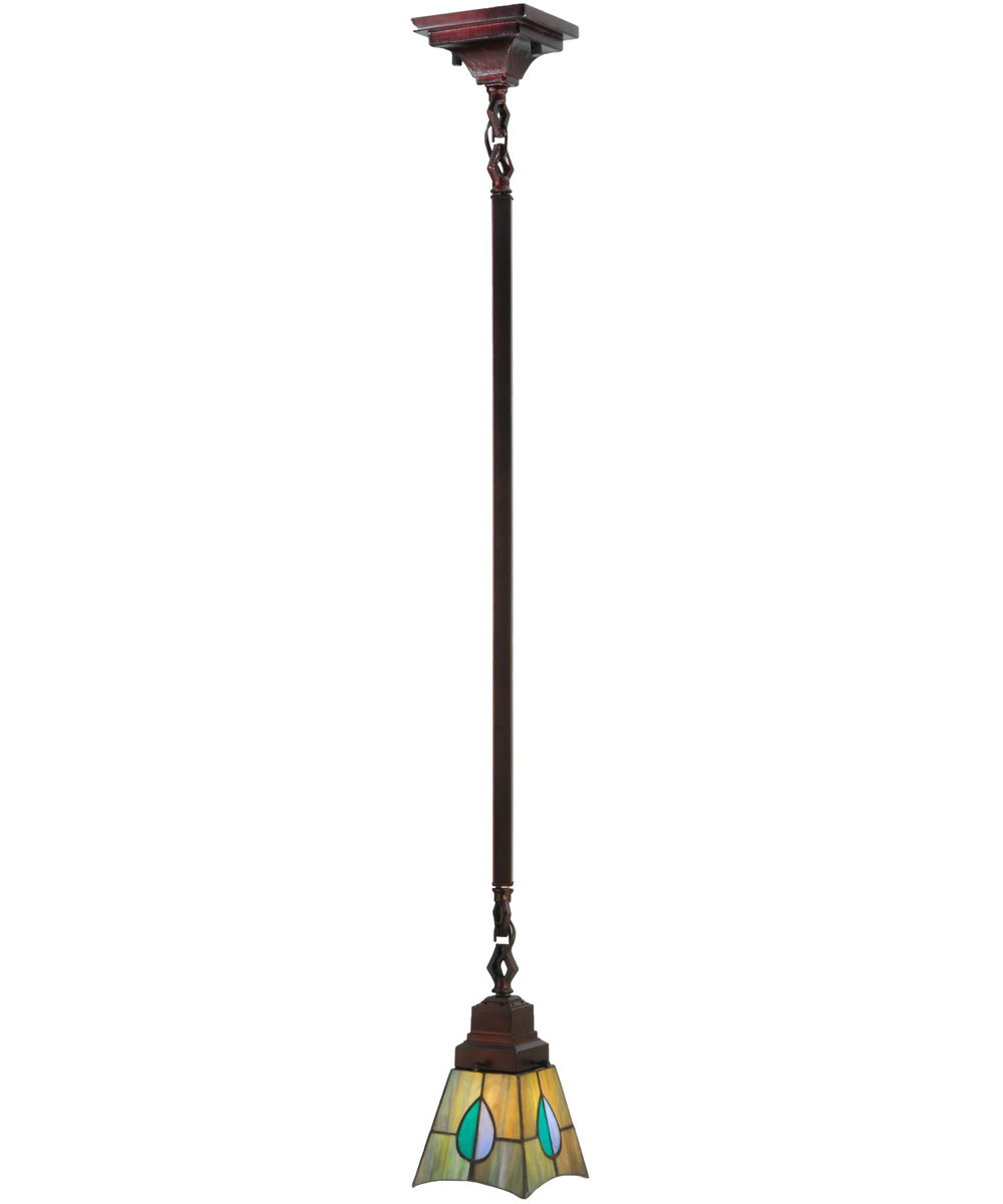 The 5"W Mackintosh Leaf Mini Pendant is a stunning piece of lighting art that brings elegance and sophistication to any room. This exquisite pendant light features a beautifully handcrafted stained glass shade, showcasing a harmonious blend of amber, green, blue, and violet hues. The intricate leaf design adds a touch of nature-inspired beauty, making it a perfect addition to both traditional and contemporary interiors.