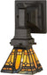 A powerful design statement fueled by strong lines and a simple geometric design; this lamp's art glass shade features Beige and Honey Tones accented with multicolored Ripple glass. Brilliant stained glass; an appealing Mission styled shade and old world hardware finished in Mahogany Bronze are fashioned into a handsome lamp. The art glass shade is constructed using Meyda Tiffany's famous copperfoil construction process.