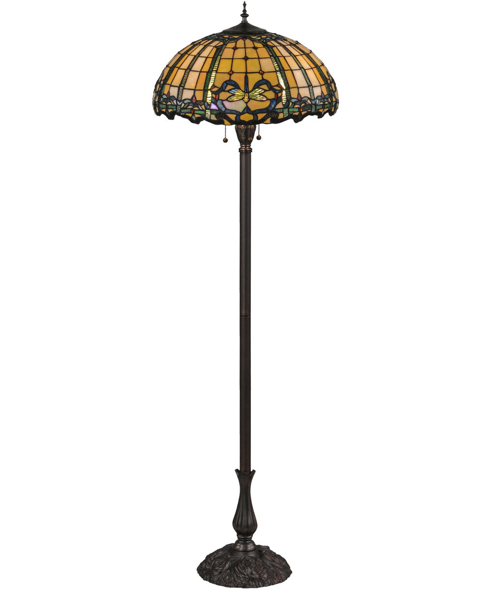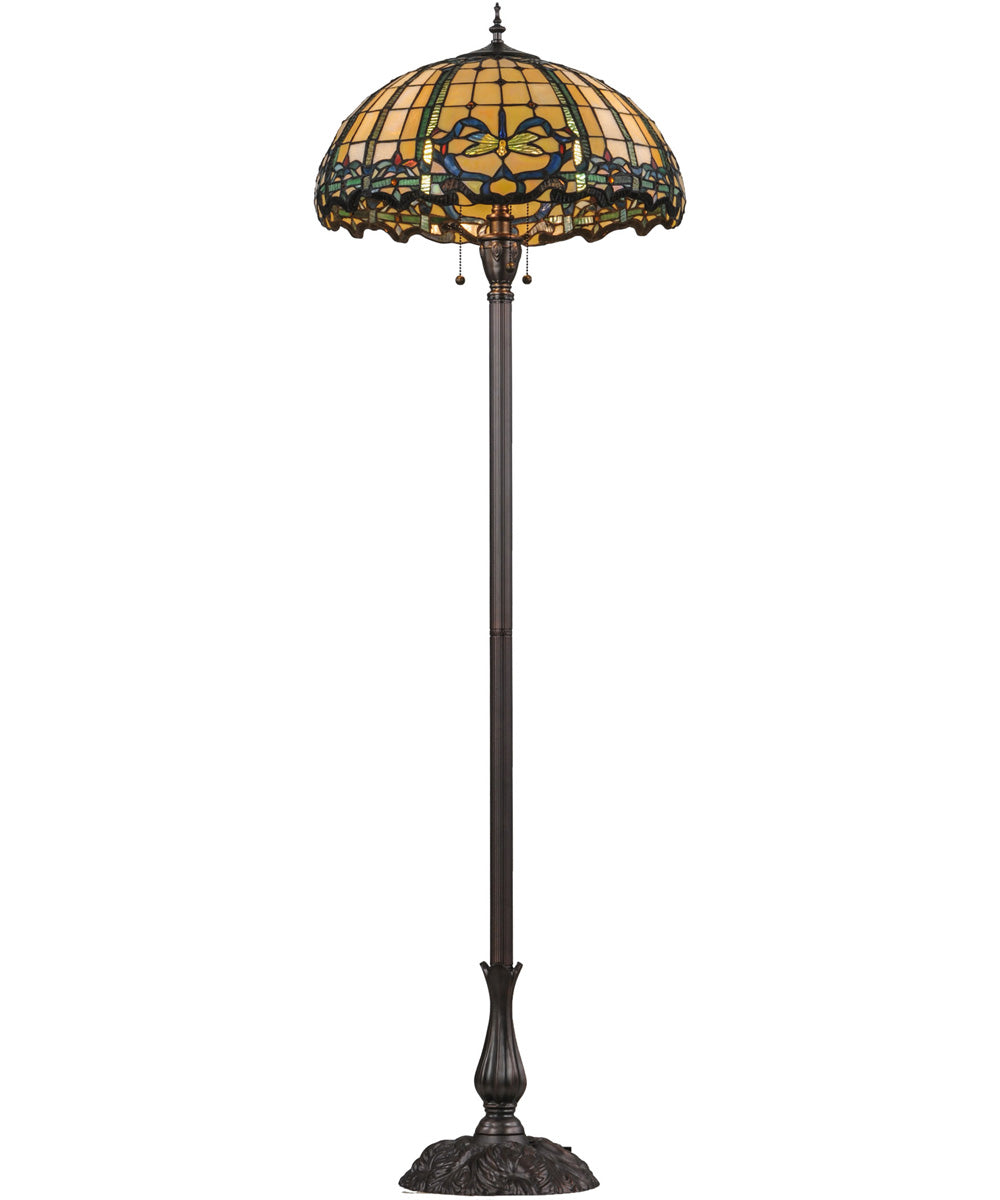 The 63"H Dragonfly Trellis Floor Lamp is not only a beautiful decorative piece but also a highly functional lighting solution. It is designed to accommodate three 60-watt medium base bulbs, providing ample illumination for any space. The lamp is UL listed for dry locations, making it suitable for use in living rooms, bedrooms, home offices, or any other indoor area where you want to add a touch of elegance and warmth.