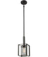 The 7 Inch W Finn Mesh Mini Pendant is a perfect blend of vintage charm and modern aesthetics, making it an ideal addition to any contemporary decor. This pendant light features a unique design with a cylindrical mesh shade suspended within a square frame, creating a striking visual contrast that is sure to catch the eye. The antique bronze finish adds a touch of timeless elegance, while the amber bulb cover provides a warm, golden glow when illuminated, enhancing the ambiance of any room.