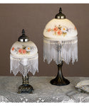 Meyda tiffany 8"H Roussillon Rose Bouquet Fringed Mini Lamp