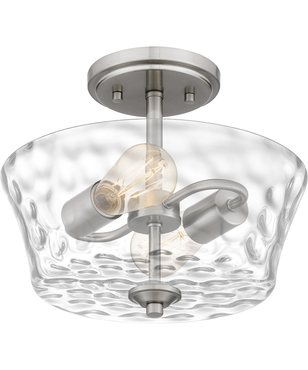 The Acacia 2-light Semi Flush Mount in Brushed Nickel is a stunning addition to any home, offering a blend of modern elegance and timeless charm. The fixture features a dappled clear water glass shade that creates a serene sense of movement, adding a touch of sophistication to your decor. The brushed nickel finish provides a sleek and contemporary look, making it an ideal choice for various interior styles.