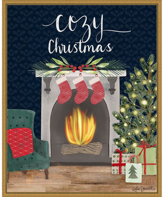• CUSTOM CANVAS ARTWORK DETAILS: Cozy Christmas Fireplace by Katie Doucette. DESCRIPTION: Tis the season for all things merry and bright! Add holiday cheer to your home with this seasonal reminder of winter celebrations that bring together family and friends.
