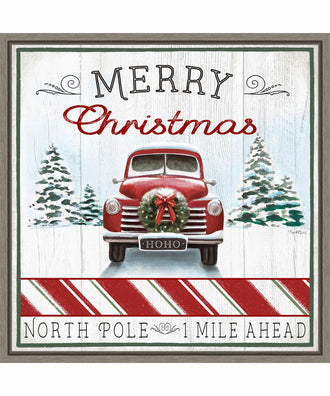Framed North Pole Christmas Truck by Elizabeth Tyndall Canvas Wall Art Print (22  W x 22  H), Sylvie Greywash Frame
