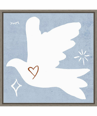 ART DESCRIPTION: This elegant piece features a white dove in flight against a soft blue background. The simple yet powerful Christmas image stands out as a symbol of peace and freedom. This Amanti Art canvas art print was created by Melissa Wang and printed by Amanti Art in Madison WI. The canvas is stretched by hand and finished with a float frame. Individually made using traditional custom framing techniques, it has the quality you would expect from your local frame shop. Because of our attention to detail and focus on artistry, architects, interior designers, and homeowners alike choose this framed canvas artwork to create beautiful living spaces.
