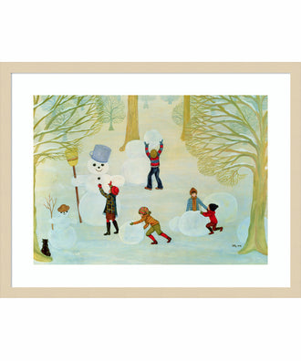 ART DESCRIPTION: Amidst the serene winter landscape, children have crafted a group of snowmen, each with their own unique personality. The snowmen stand tall and proud, embodying the joy and whimsy of the holiday season, while the surrounding nature provides a peaceful backdrop to their playful antics. This Amanti Art framed art print was created by Ditz and printed by Amanti Art in Madison WI. The print is giclee printed using fade-resistant inks for picture-perfect detail and incredible depth of color and finished with a 100% real wood frame. Individually made using traditional custom framing techniques, it has the quality you would expect from your local frame shop. Because of our attention to detail and focus on artistry, architects, interior designers, and homeowners alike choose this framed art print to create beautiful living spaces.