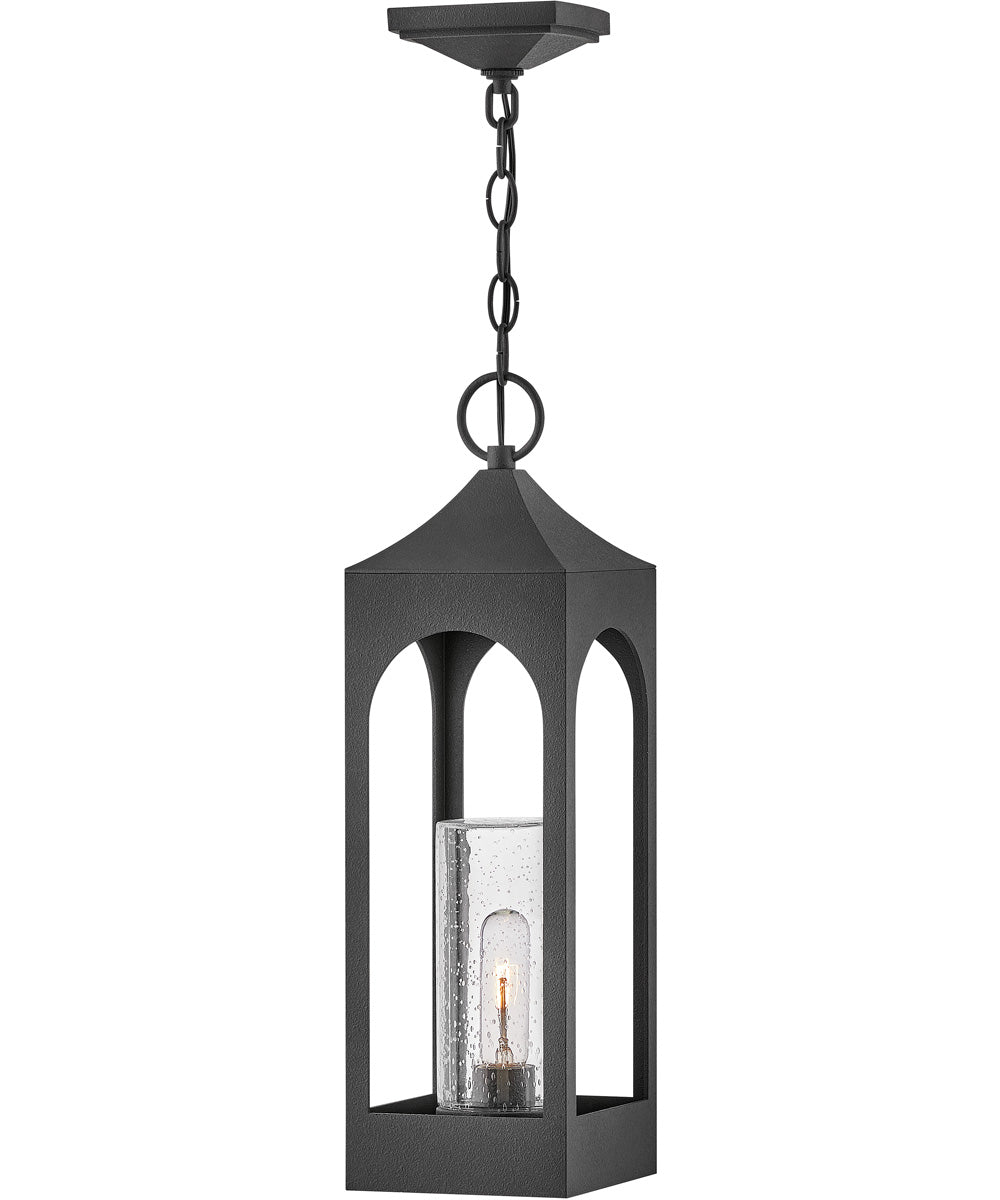 The Amina 1-Light Medium Outdoor Hanging Lantern in Distressed Zinc by Hinkley is a stunning addition to any exterior space. Crafted with meticulous attention to detail, this lantern features a sleek and elegant design that effortlessly combines modern aesthetics with timeless charm.