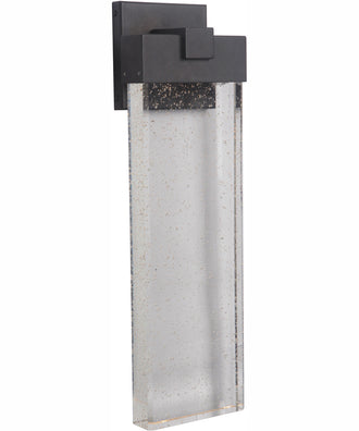 This outdoor wall lantern features a sleek, matte black finish that complements its sophisticated design. The lantern is affixed to a sturdy metal base, ensuring durability and longevity. The primary highlight of this fixture is its shade, crafted from seeded K9 crystal, which adds a touch of sparkle and elegance. The crystal shade not only enhances the visual appeal but also diffuses the light beautifully, creating a warm and inviting ambiance.