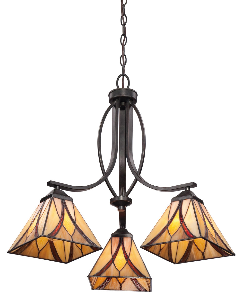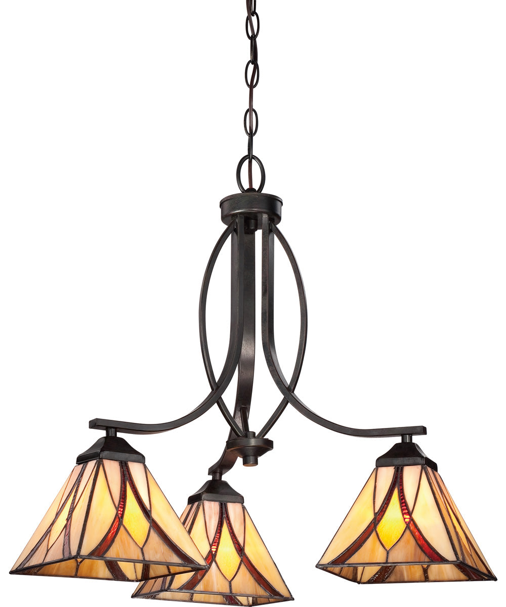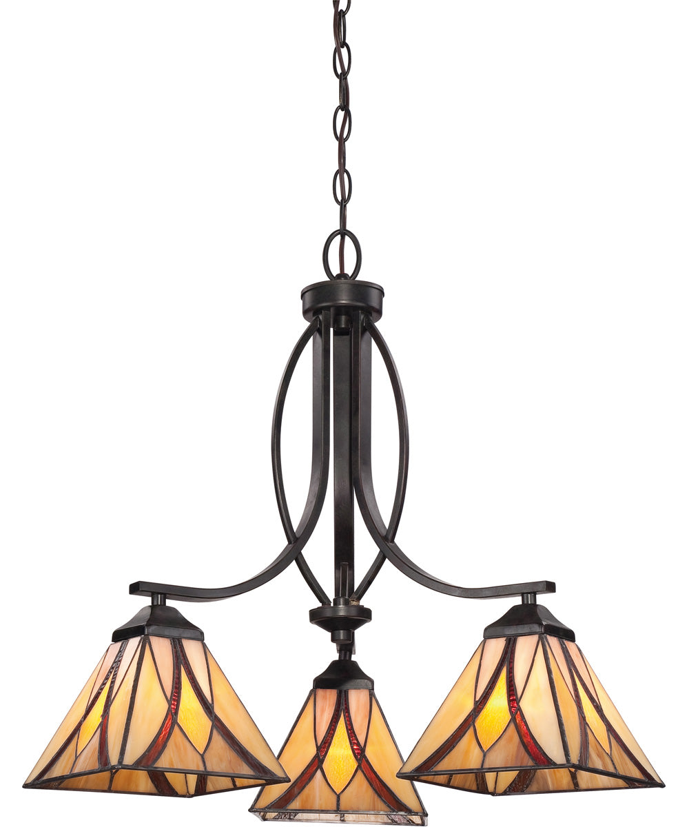The Asheville 3-light Chandelier in Valiant Bronze is a perfect blend of elegance and sophistication, designed to elevate the aesthetic appeal of any room. This chandelier features gentle scrollwork combined with Tiffany-style glass shades, creating a classic yet timeless pattern that exudes charm and grace. The rich Valiant Bronze finish anchors the traditional styling, making it a versatile addition to various interior themes.