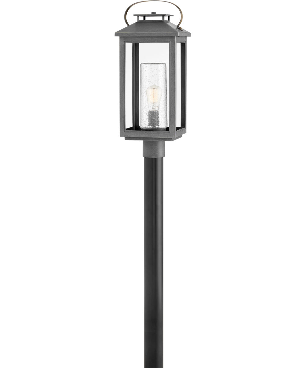 Introducing the Atwater Coastal Elements 1-Light Medium Outdoor Post Top or Pier Mount Lantern in Ash Bronze by Hinkley. This elegant lantern is designed to enhance the ambiance of your outdoor spaces, combining functionality with a timeless aesthetic. The Ash Bronze finish offers a sophisticated touch, making it a perfect addition to any exterior decor.