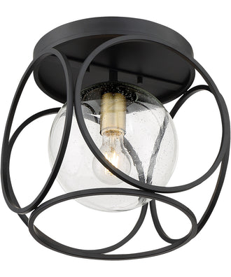13"W Aurora 1-Light Close-to-Ceiling Black / Vintage Brass