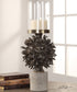 • Features: Clear Glass Globe Above A Cluster Of Life-cast Hawaiian Autograph Tree Pods Rendered In An Antique Bronze Finish, Set On A Concrete Cylinder Base With One, 4"x 3" Distressed Off-white Candle.