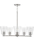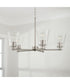 This chandelier boasts a minimalist yet eye-catching design. The brushed nickel finish provides a clean, polished look that seamlessly blends with modern and transitional decor styles. The tapered seeded glass shades add a unique texture and visual interest, making this chandelier a focal point in any room. The combination of metal and glass elements creates a harmonious balance between industrial and elegant aesthetics.
