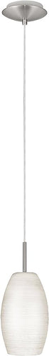 Eglo presents the New Batista 4.75"W 1-Light Mini Pendant Light Fixture Matte Nickel Finish with White Wiped Glass. A white and warm accent for modern interiors. The Eglo Batista 1 Mini Pendant features a hand-made White glass shade with streaks around its circumference adding depth and texture. The creamy tone of the shade is complemented by the cool Matte Nickel finish on the coordinating metal supports and accents.
