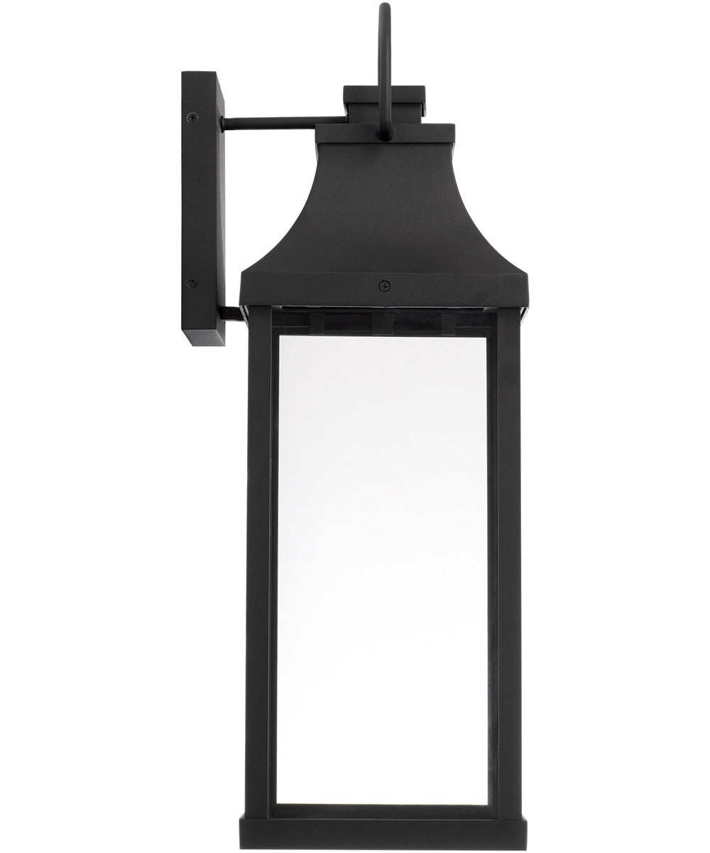 The Bradford 1-Light Outdoor Wall Lantern is a stunning blend of transitional and modern design elements. Its bold lines and oversized ring create an eye-catching silhouette that enhances the aesthetic appeal of any home's exterior. The sleek black finish adds a touch of sophistication, making it a versatile addition to various architectural styles. The lantern's rectangular shape, combined with its clean, straight edges, provides a contemporary look while maintaining a timeless charm.
