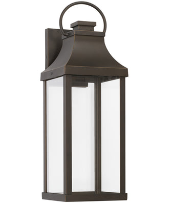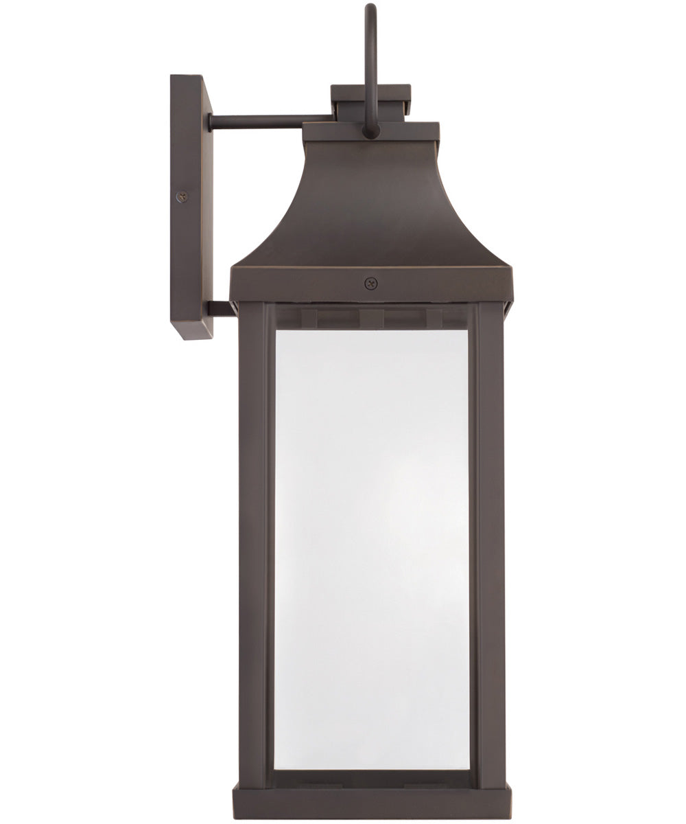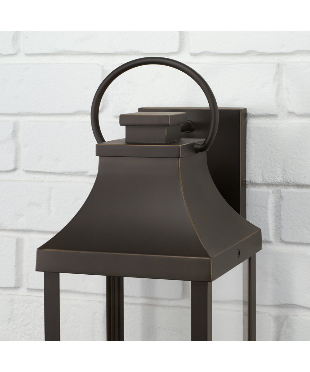The Bradford 1-Light Outdoor Wall Lantern in Oiled Bronze is where transitional meets modern. Its bold lines and oversized ring exude a classic curb appeal, making it a standout addition to any home exterior. The lantern's rectangular shape, combined with its sleek design, creates a sophisticated look that seamlessly blends with various architectural styles.