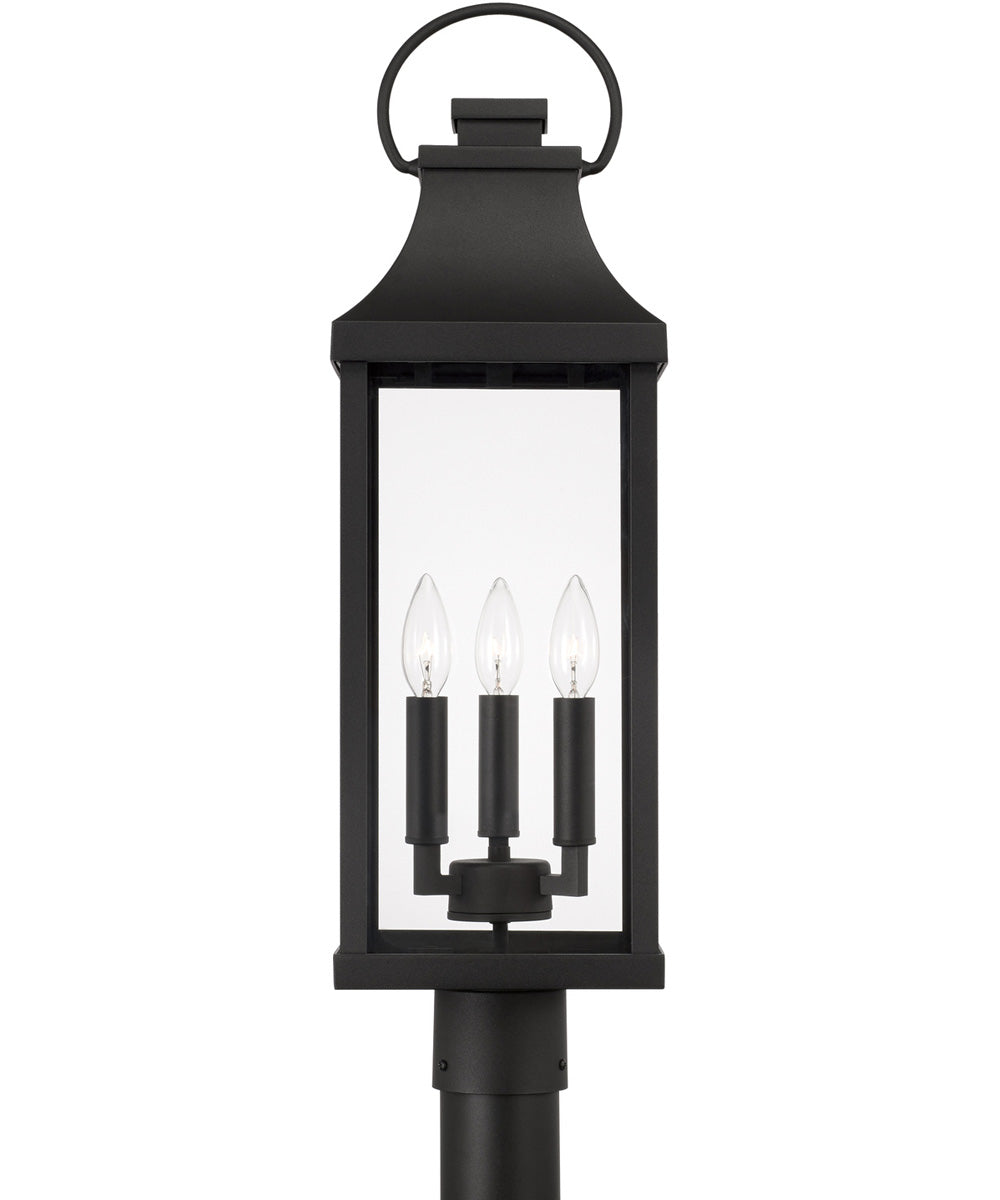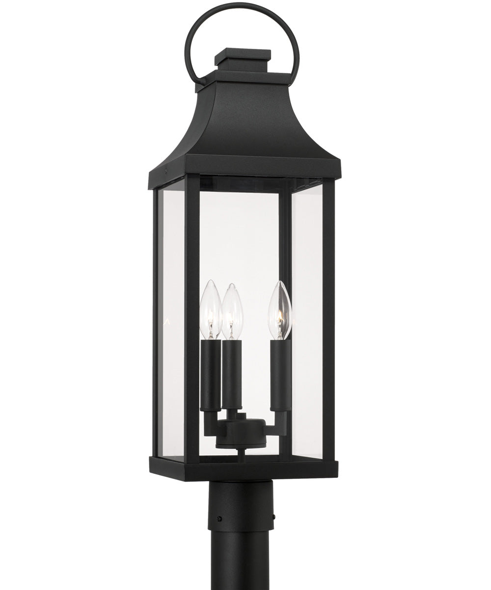 An outdoor post lantern is attached to the top of a metal post (not included). This is usually positioned at the entrance to a driveway, or in the middle of a large open space. It can also function to light an entry-way if placed close to the building. Light is emitted in all directions. As a hardwired fixture, outdoor post lights are electrically installed and may be operated by a wall switch or sensor. A larger yard may need more than one. They can be alternatively mounted onto a pier-mount adapater on top of a wall.