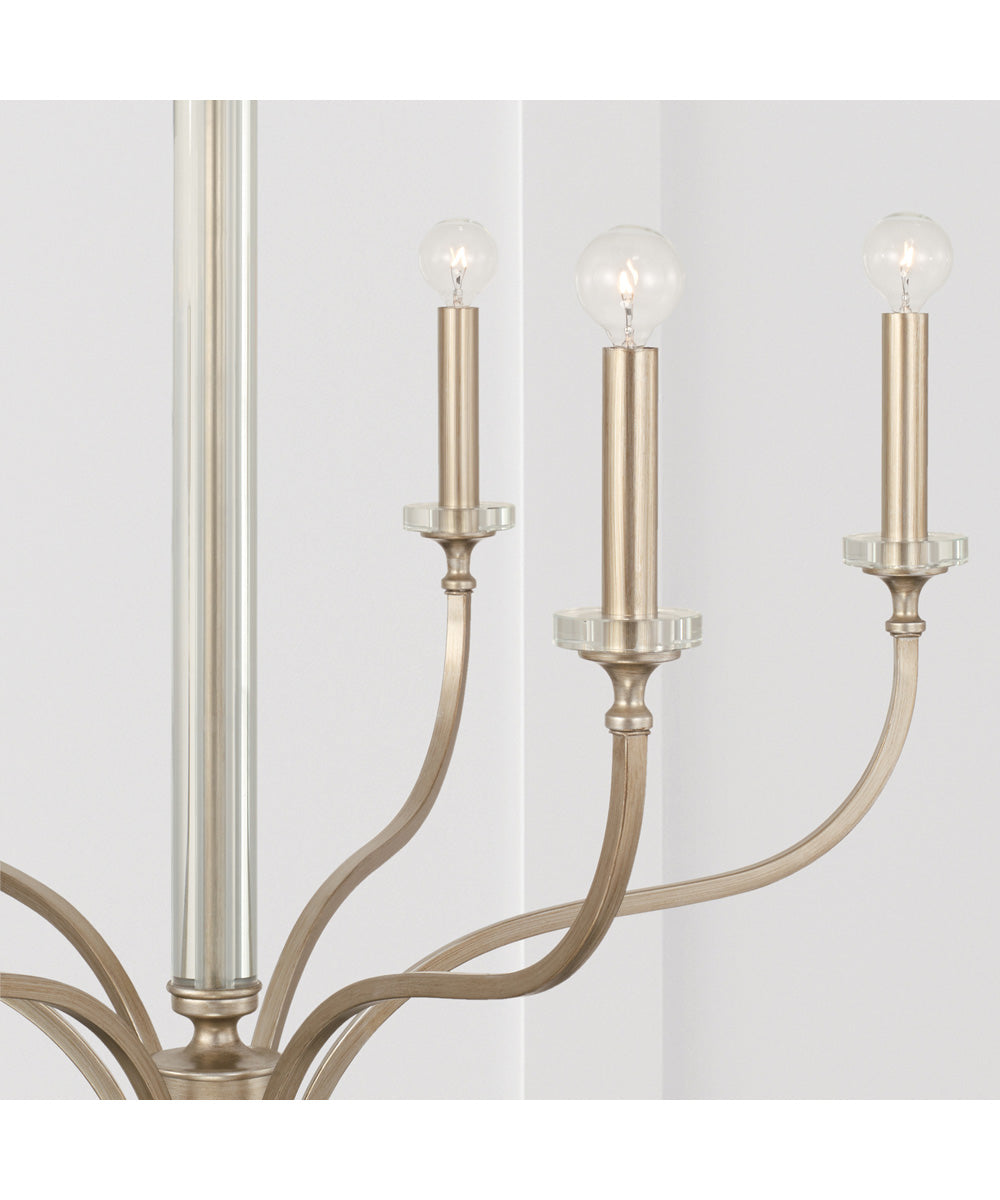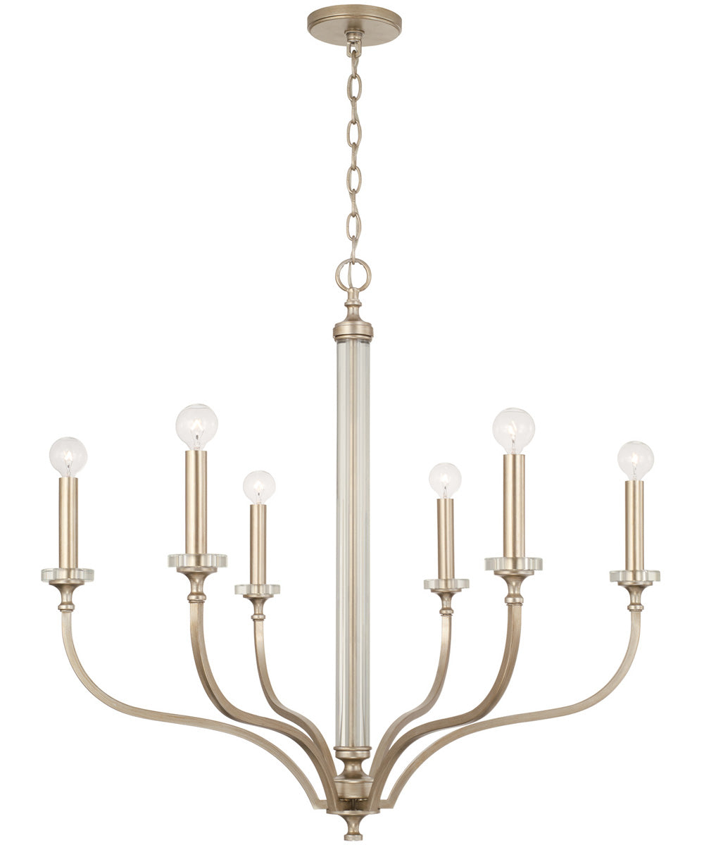 Measuring 32 inches in width and 30.5 inches in height, the Breigh Chandelier is perfectly sized for medium to large rooms. It requires six 60-watt E12 candelabra base bulbs, providing ample illumination for dining rooms, living areas, or entryways. The chandelier is part of the Breigh Collection by Capital Lighting, known for its quality craftsmanship and stylish designs. Additionally, it is UL listed, ensuring safety and reliability.