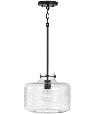 The Brighton 1-Light Pendant in Matte Black is a stunning addition to any space, offering a blend of modern sophistication and timeless elegance. The unique pebble detailing on the glass cloche adds an artisan touch to the classic silhouette, making it a standout piece. The pendant's sleek matte black finish complements a variety of interior styles, from contemporary to industrial, ensuring it seamlessly integrates into your existing décor.