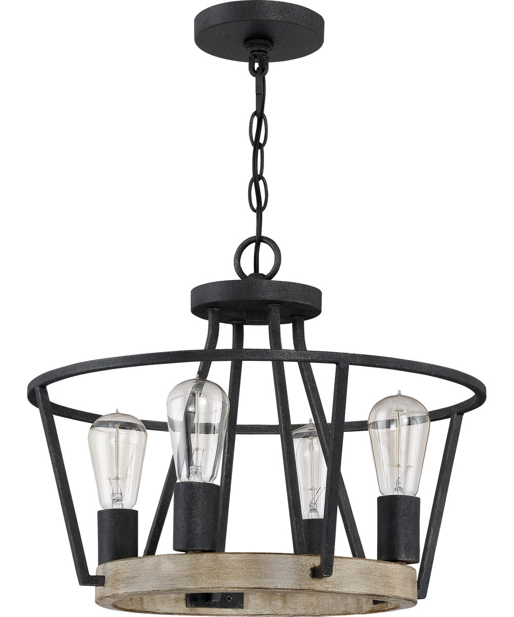 Transform your living space with the rustic elegance of the Brockton 4-light Pendant in Grey Ash. Its unique design, high-quality construction, and versatile style make it a perfect addition to any home. Create a warm and inviting atmosphere with this charming pendant light, and enjoy the beauty and functionality it brings to your space. Don't miss out on this exquisite lighting fixture – order now and elevate your home's decor!