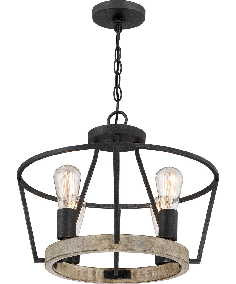 The Brockton pendant light accommodates four 100-watt medium base bulbs (not included), providing ample illumination for any room. The use of vintage filament bulbs enhances the rustic charm, casting a soft and ambient light that creates a cozy and welcoming environment. This makes it an excellent choice for dining areas, kitchens, living rooms, and entryways where a warm and inviting ambiance is desired.
