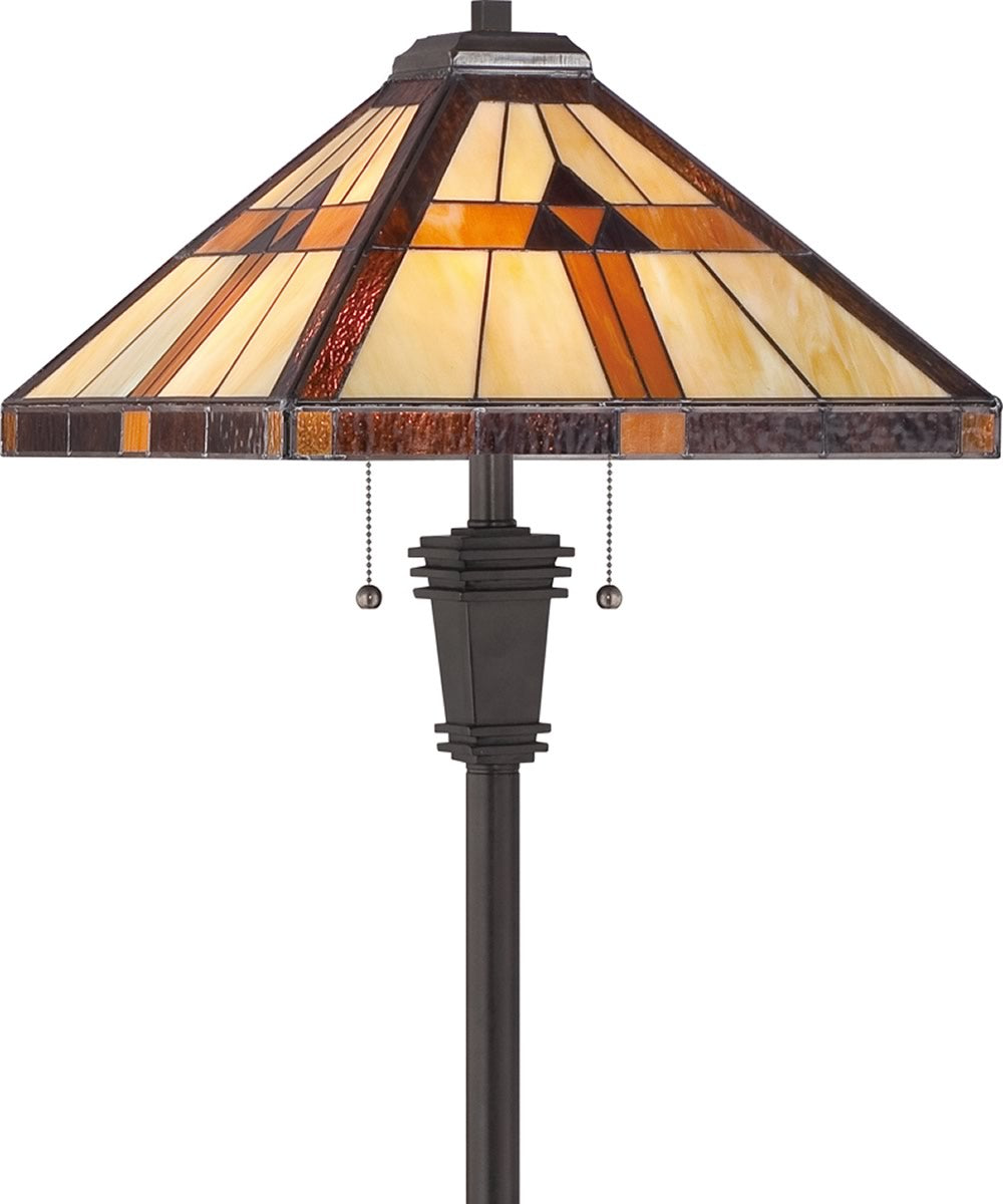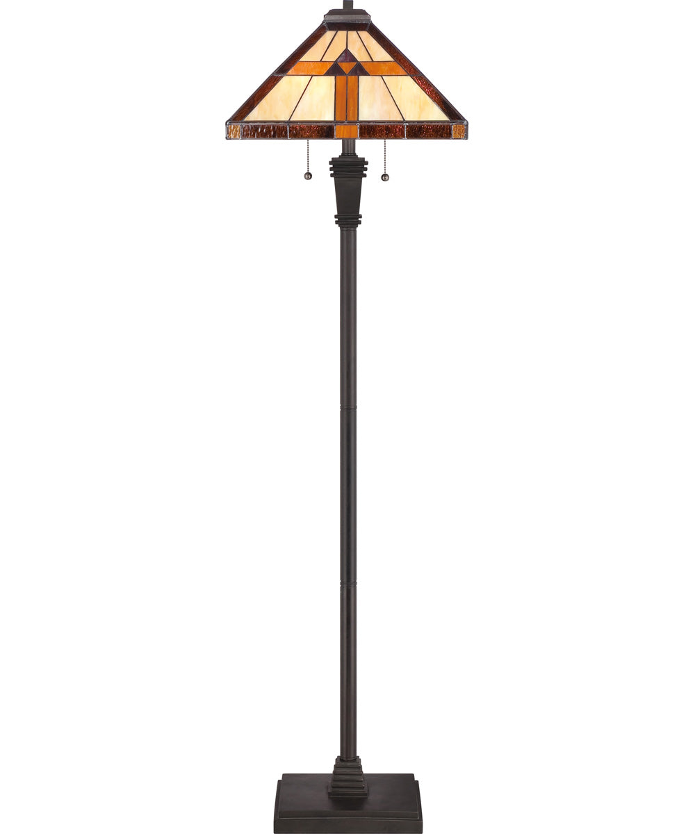 The Bryant Medium 2-light Floor Lamp in Vintage Bronze brings a touch of American craftsman style to any living space. Standing at an impressive 60 inches high, this lamp is a striking addition to your home decor. The lamp features a beautifully crafted shade made from 112 pieces of neutral-toned art glass, meticulously hand-assembled using the copper foil method developed by Louis Comfort Tiffany. This traditional design is further enhanced by an authentic bronze patina finish, adding a classic touch to your interior.