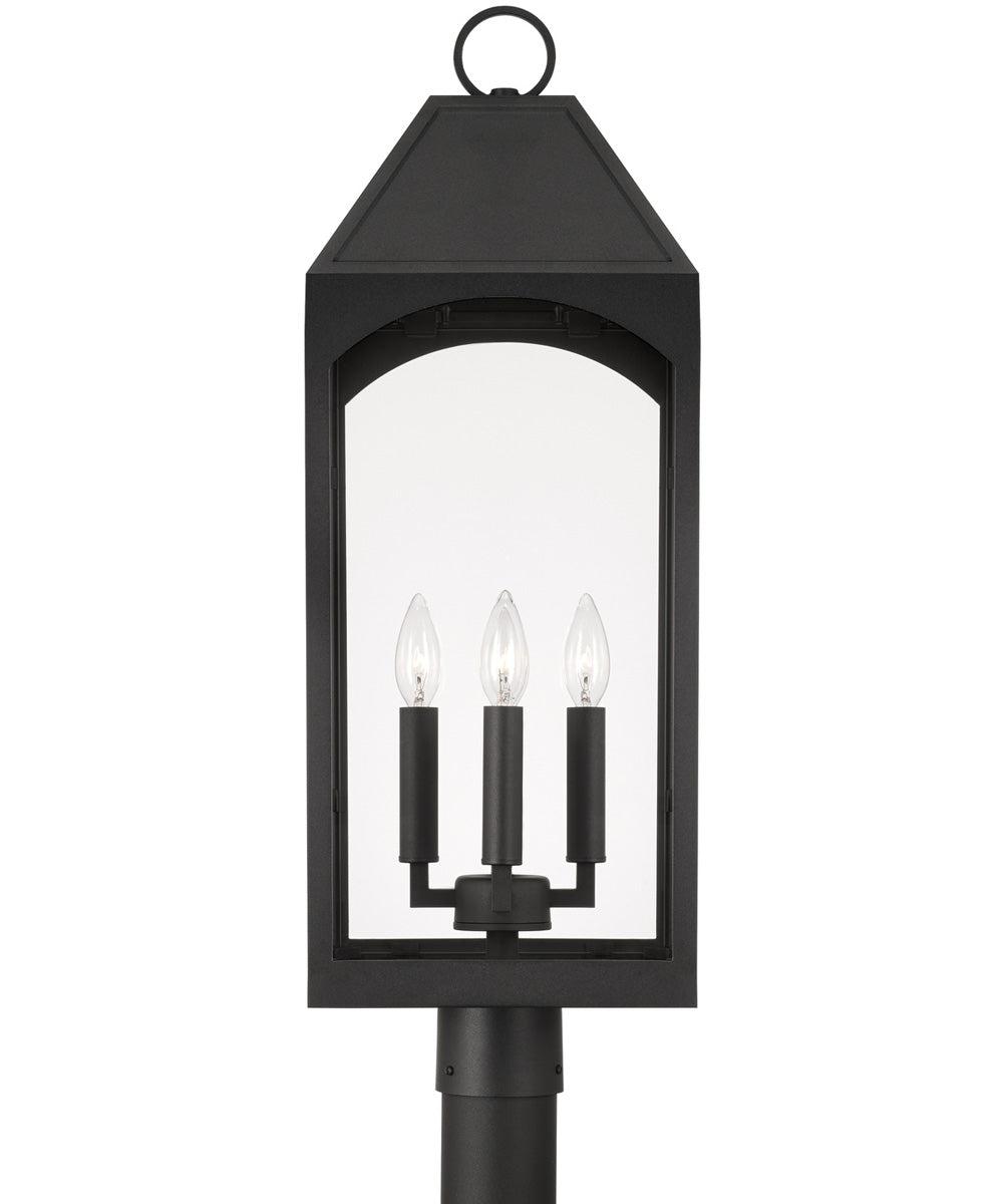 An outdoor post lantern is attached to the top of a metal post (not included). This is usually positioned at the entrance to a driveway, or in the middle of a large open space. It can also function to light an entry-way if placed close to the building. Light is emitted in all directions. As a hardwired fixture, outdoor post lights are electrically installed and may be operated by a wall switch or sensor. A larger yard may need more than one. They can be alternatively mounted onto a pier-mount adapater on top of a wall.