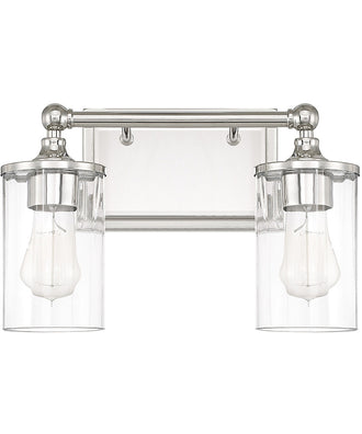 The Camden 2-Light Vanity complements a wide range of room themes. Its polished nickel finish and clear glass shades make it a versatile choice for contemporary, transitional, and even industrial-themed spaces. The clean lines and understated elegance of this fixture ensure that it will remain stylish and relevant for years to come.