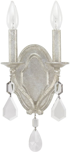 The antique silver finish and crystal accents make this sconce versatile enough to complement a wide range of room themes. It pairs beautifully with vintage, shabby chic, and even modern glam decor styles. The soft, ambient light it emits creates a warm and inviting atmosphere, perfect for cozy evenings at home or entertaining guests. Place it in your entryway to make a grand first impression, or use it to highlight artwork and architectural features in your living spaces.