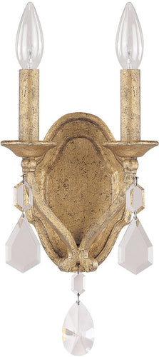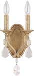 This 2-light sconce is versatile enough to be used in various settings throughout your home. It is ideal for enhancing the lighting in hallways, living rooms, dining rooms, bedrooms, or even bathrooms. The warm glow from the candelabra bulbs combined with the sparkling crystals creates a cozy and inviting atmosphere, perfect for intimate gatherings or relaxing evenings. The antique gold finish and crystal accents make it an excellent choice for traditional, vintage, or glam-themed interiors.